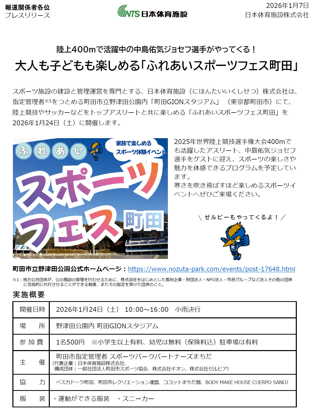 | 主催 | 町田市指定管理者スポーツパークパートナーズまちだ (代表企業:日本体育施設株式会社、 構成団体:一般社団法人町田市スポーツ協会、株式会社ギオン、株式会社ゼルビア) |